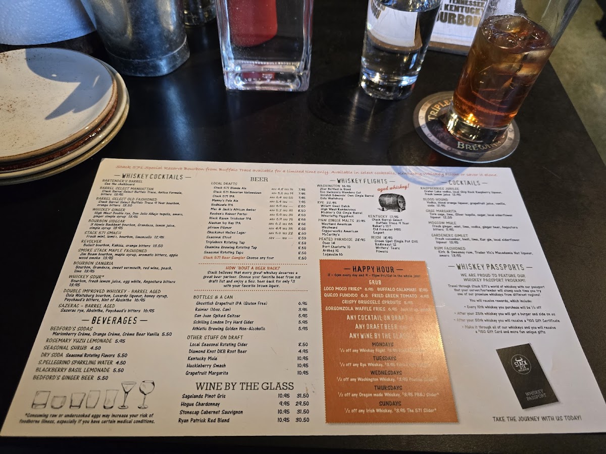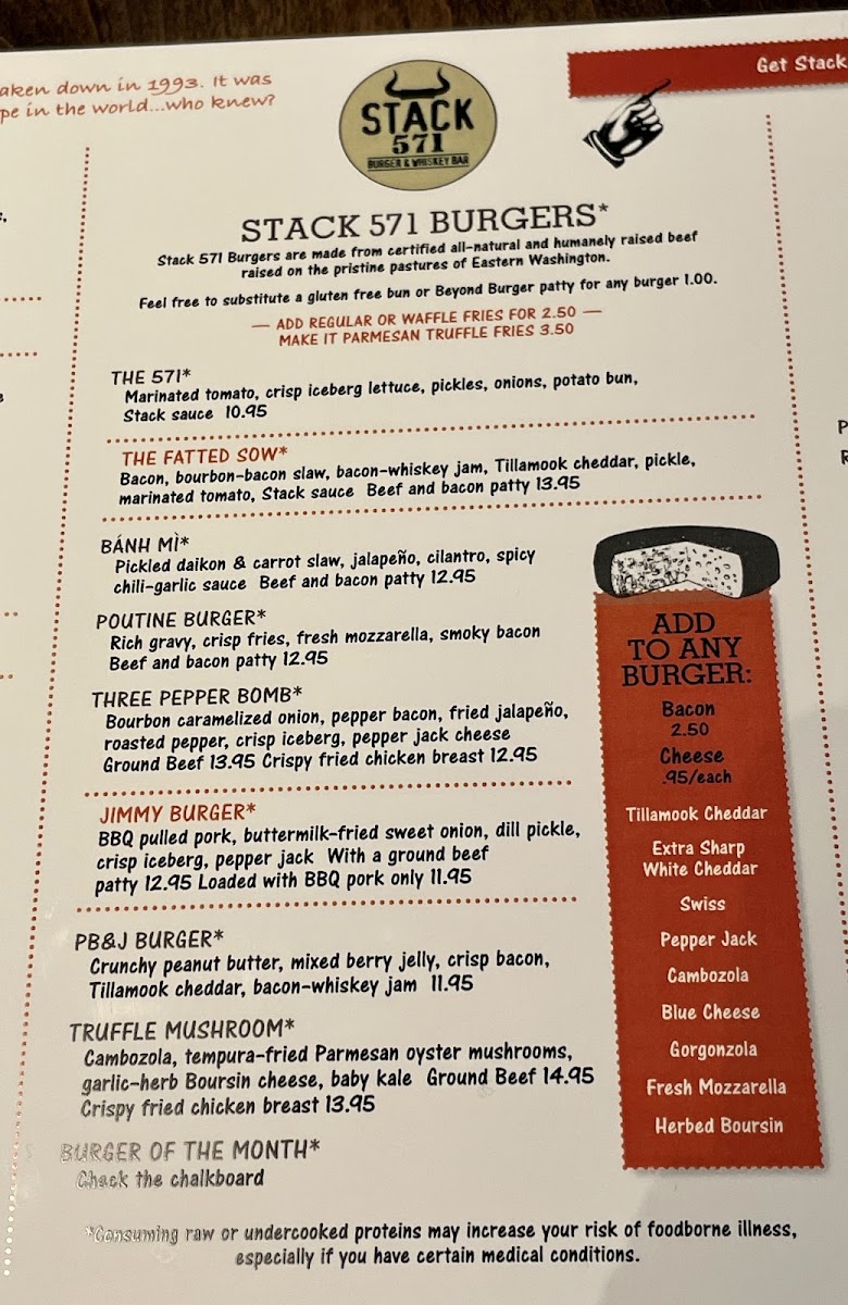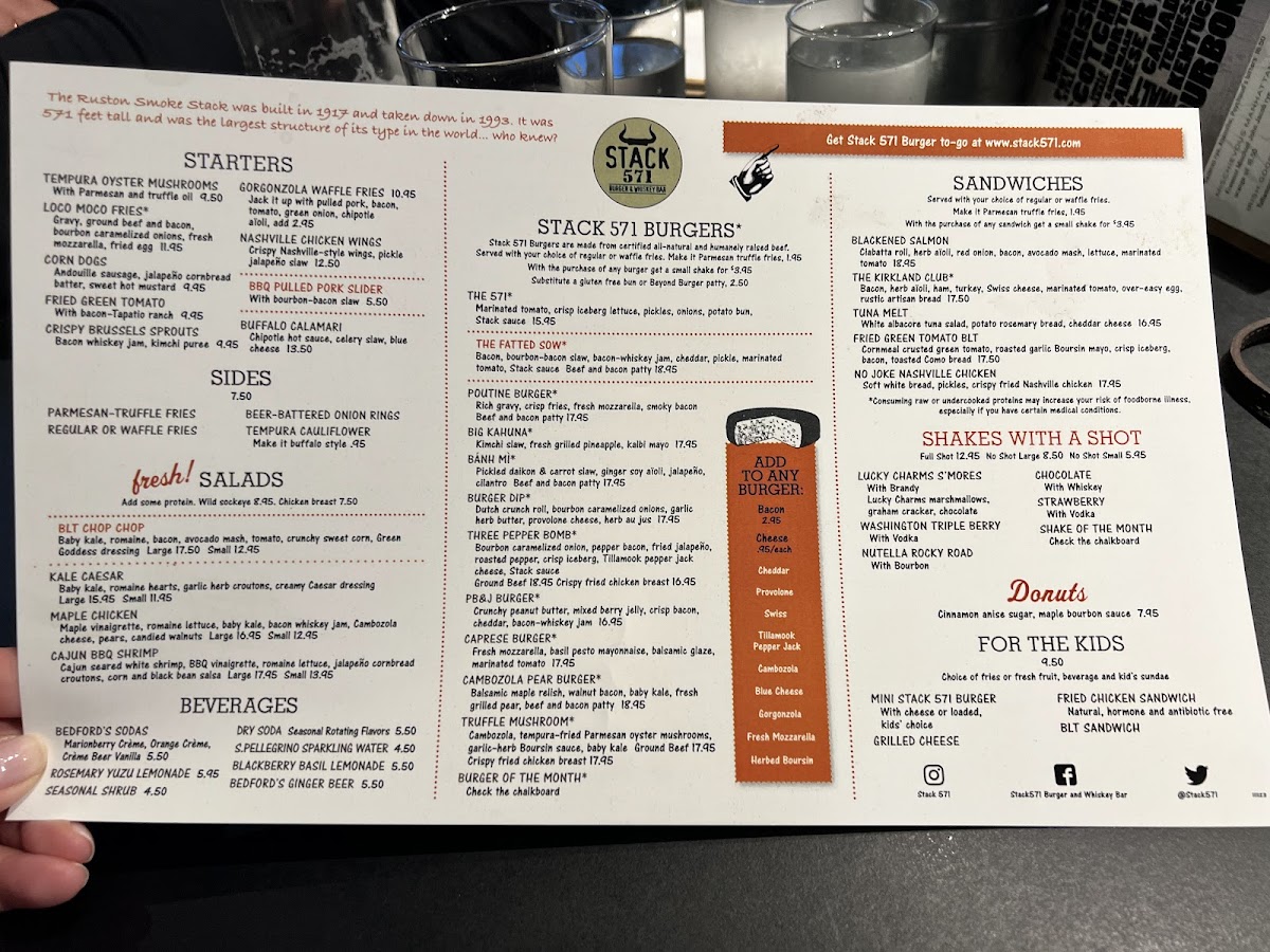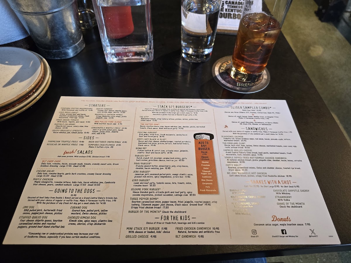 Bacon, bourbon bacon slaw, bacon whiskey jam, cheddar, pickle, marinated tomato, stack sauce.