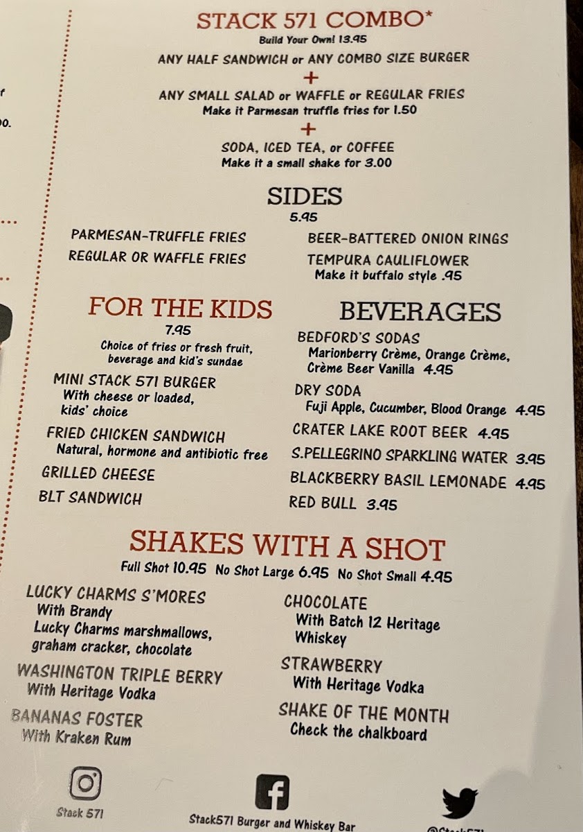 Marinated tomato, crisp iceberg lettuce, pickles, onions, American cheese, potato bun, Stack sauce