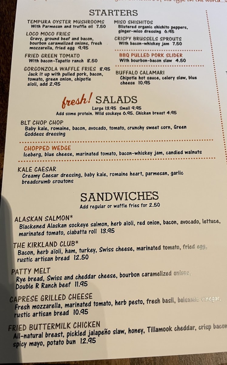 Crisp iceberg, grape tomato, bacon, candied walnuts, chunky blue cheese, shaved cabbage, bacon whiskey jam